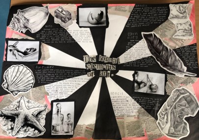The course provides students with the opportunity to develop visual skills and to express ideas by working through a variety of projects.There are opportunities to experiment with different media in order to explore individual strengths and preferences. A wide range of options are available and it is possible to specialise or to work in several areas.Knowledge of contemporary and historical art & design is acquired through work in school and by visiting galleries, museums, workshops and studios.