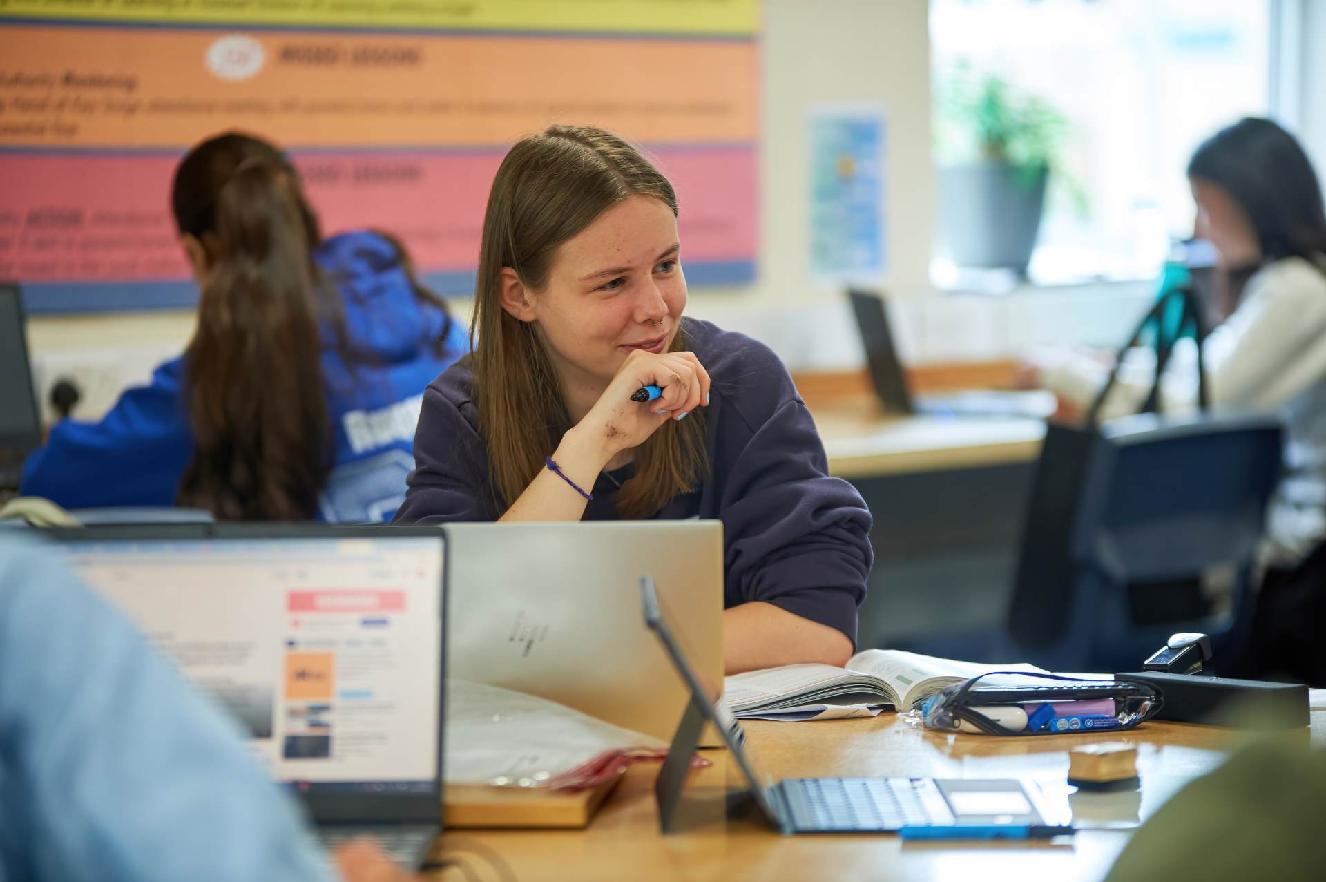 We have computers available in the quiet study room and students are also able to borrow iPads or Chromebooks for use whilst they are studying.