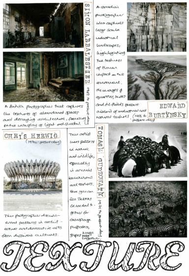 to galleries and exhibitions in order to experience work at first hand. Students must commit to five hours of photography preparation per week. Students must have access to a digital camera. The photography will be created digitally. Students will develop their knowledge of digital manipulation using our Photoshop Suite.
